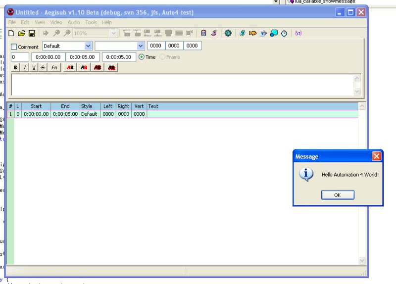 As the flaws of Automation 3 started showing through the design of Automation 4 begun. Lots of people had been crying for other languages, especially Perl and Python, so support for multiple scripting languages went into the core design. The development of Automation 4 was much on and off, standing still for months at a time. Originally it was planned for Aegisub 1.09, then got pushed to 1.10 and then finally to 1.11, which then grew into Aegisub 2 because of the load of new features and major redesigns in that version, Automation 4 one of them.